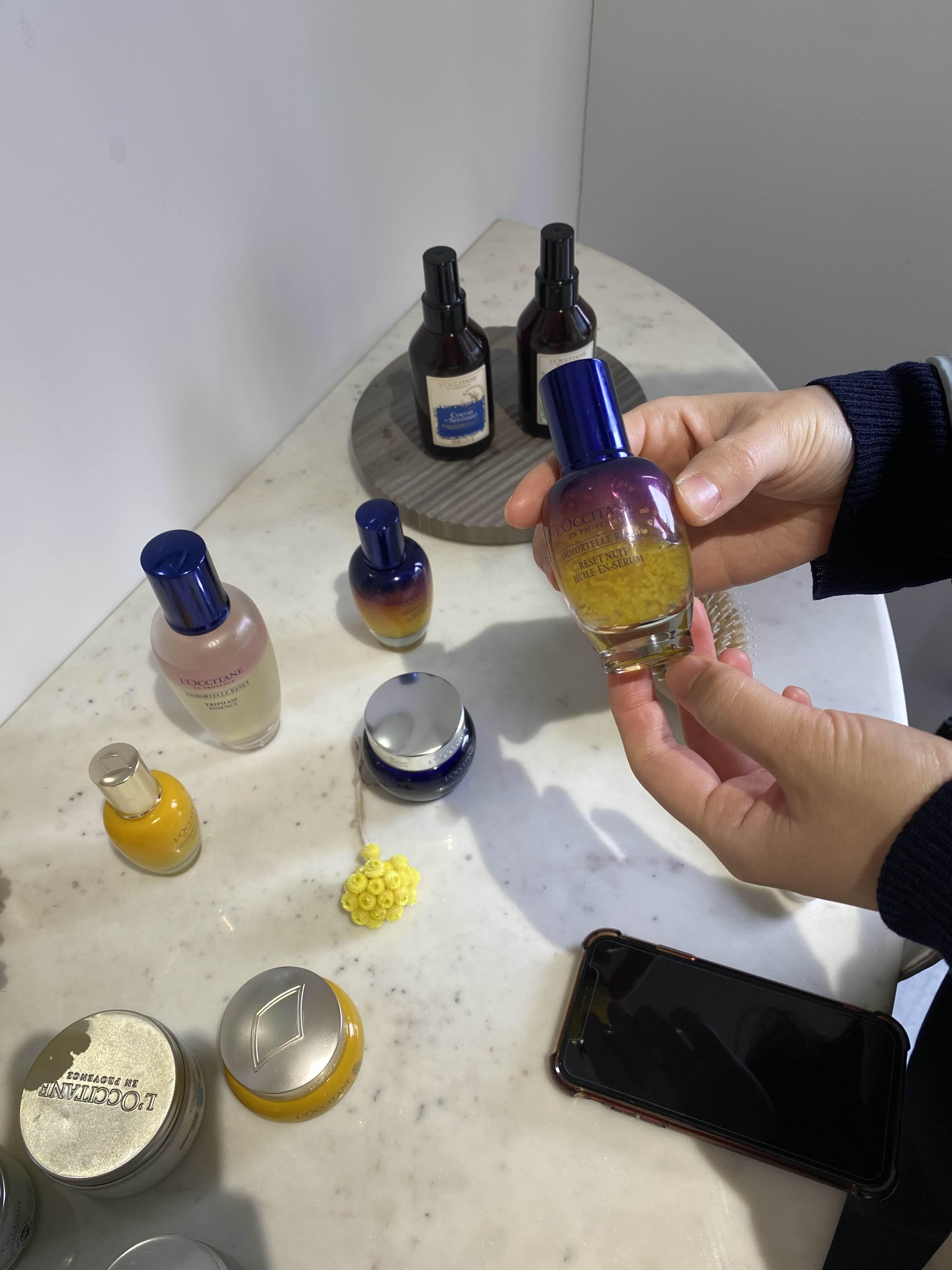 알록달록 이모르뗄 공병, 버베나 병들이 꾸며져 있고